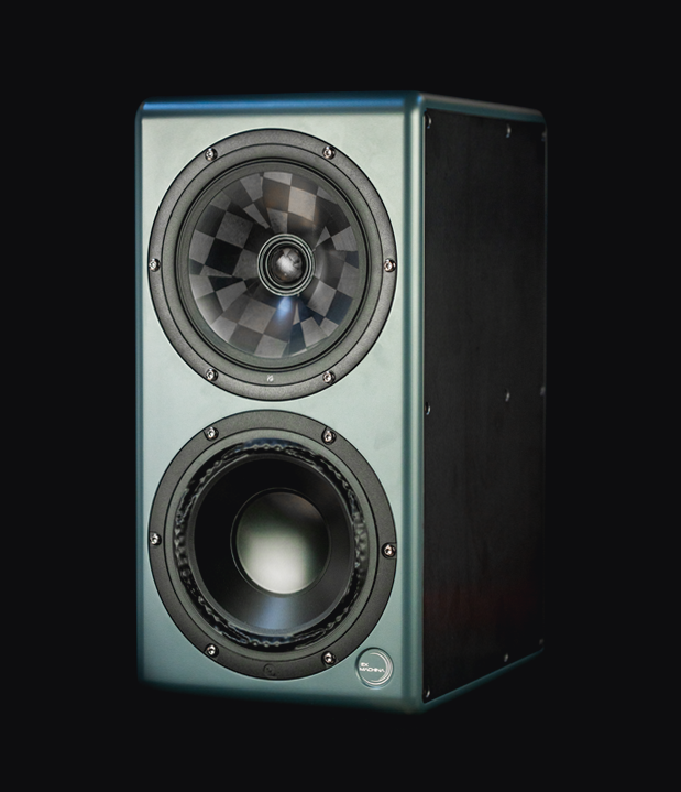 The cabinet’s outer shape follows golden ratio proportions for excellent baffle step behavior, while the internal acoustic enclosures are deliberately cuboid – allowing us to target specific modal frequencies with precision metamaterial absorbers.